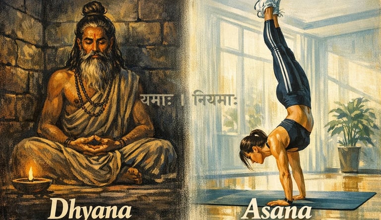 This is the biggest difference that gets lost in translation. In modern Western yoga, the word "yoga" has become synonymous with Asana (physical postures). However, Asana is only one of the eight limbs outlined in Patanjali’s classical Ashtanga Yoga.