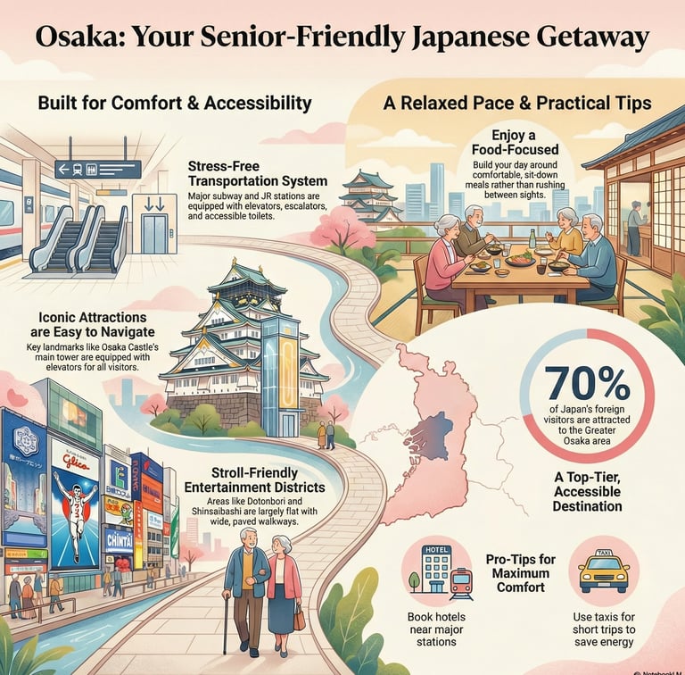 I once took my own slightly mobility-challenged uncle to Dotonbori. He didn't want to hike up a mountain temple; he wanted to see the famous Glico Man sign and eat takoyaki. Osaka delivered on its promise of accessible pleasure. Here’s why it works and how you can make your trip seamless for older travelers.