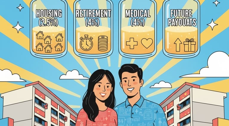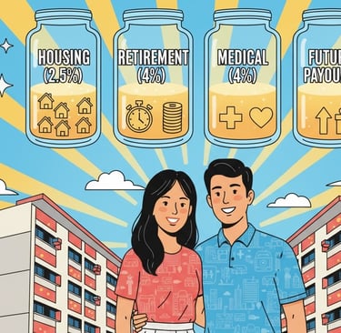 Confused about Singapore's CPF? This simple guide explains the 4 mandatory accounts (OA, SA, MA, RA), their uses (housing, health, retirement), and how they grow.